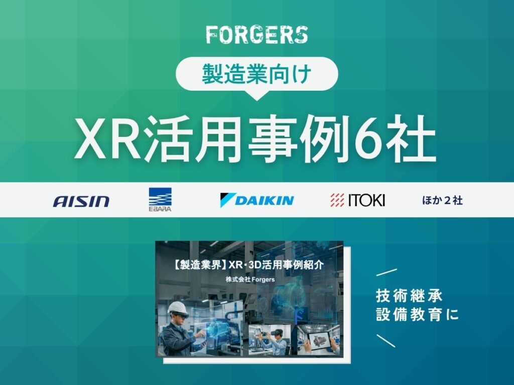 本資料では、株式会社アイシン様、ダイキン工業株式会社様、京セラ株式会社様など、株式会社Forgersが製造業界向けに提供しているXR(AR/VR/MR)・3Dソリューションの具体的な導入事例をご紹介しています。